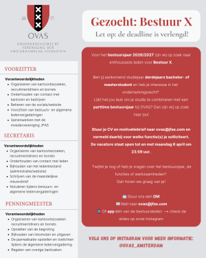Wij zijn op zoek naar gemotiveerde bestuurders die het stokje van ons willen overnemen voor bestuursjaar 2026/2027!🚀
